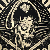Pirates of the North graphic design template in vector format, featuring detailed pirate skull now available for Adobe Illustrator, Adobe Photoshop and Corel Draw and can be used for digital printing and screenprinting .