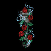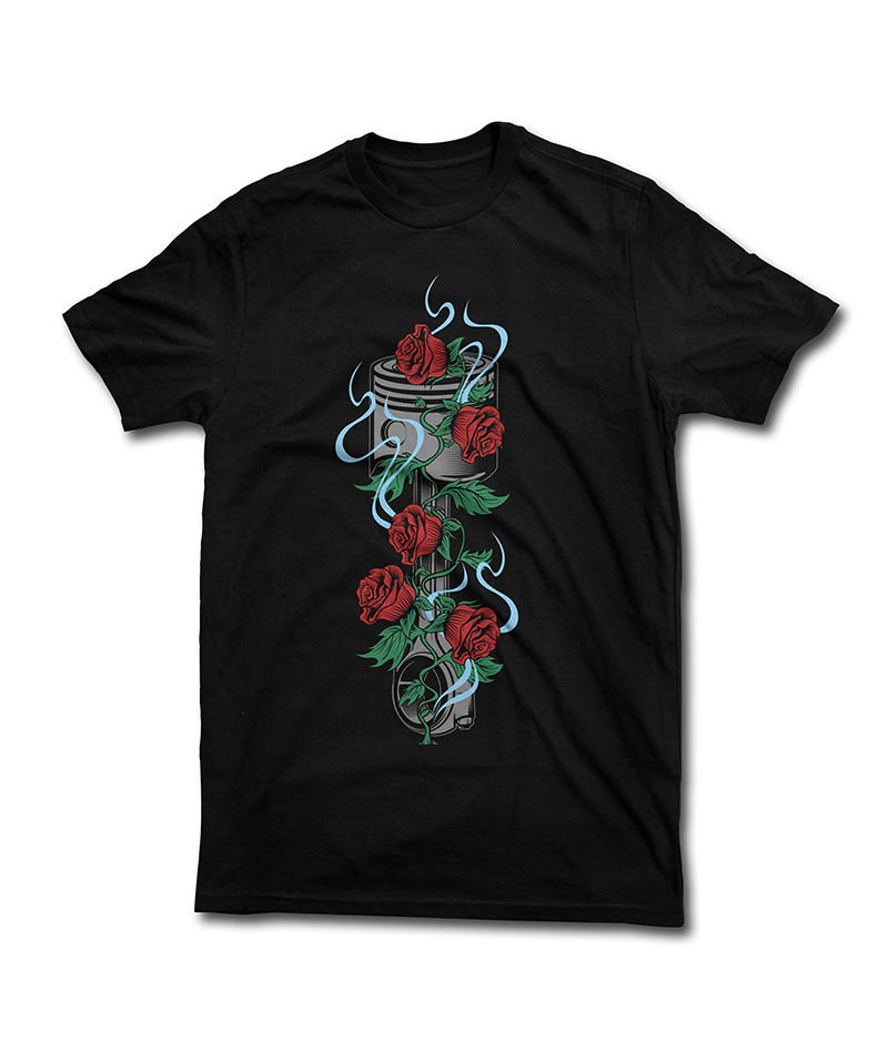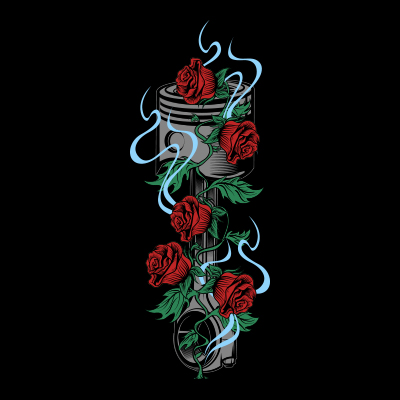 Vector illustration of motorcycle piston. Piston mix with roses, nature look.