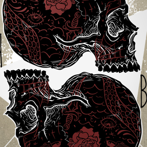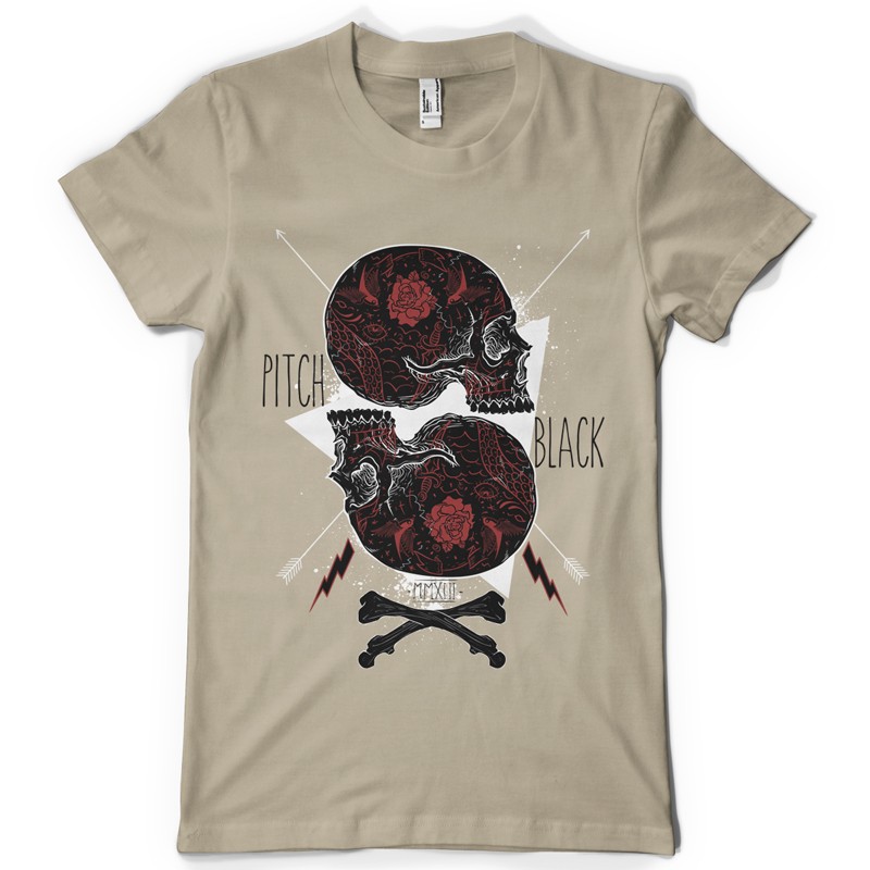 Pitch black printed t-shirt features a detailed screen print of skull of roses now available for Adobe Illustrator, Adobe Photoshop and Corel Draw and can be used for digital printing and screenprinting .