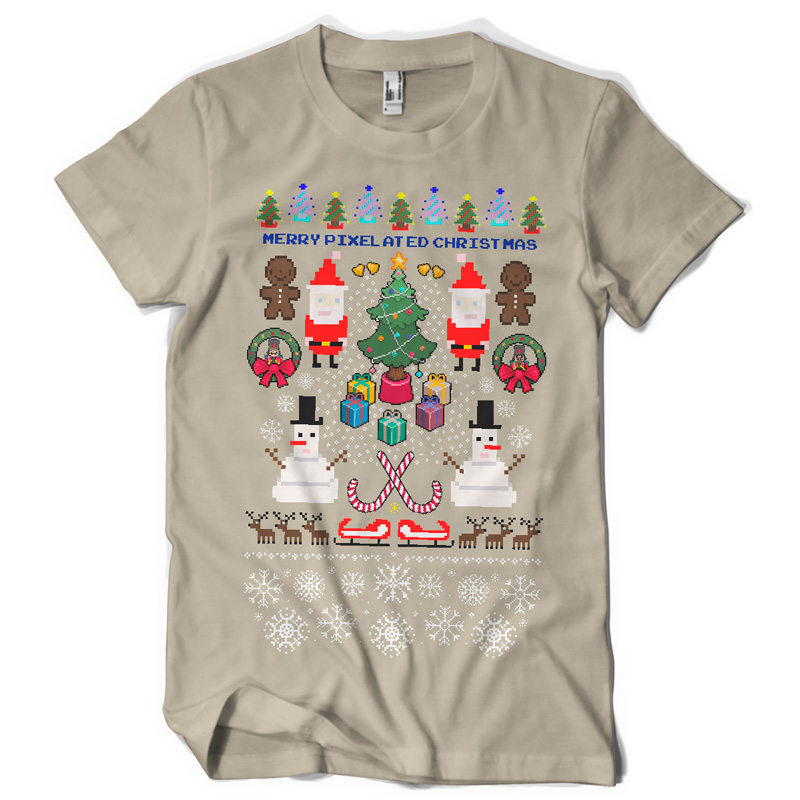 "Pixelated christmas" Artwork created in Adobe Photoshop. The file available for the client upon purchase and download are 1 layered file in TIFF (with transparency) format designed for DIRECT TO GARMENT printing. Also available upon request is 1 file in PDF format, layered, designed for the SCREEN PRINTING.