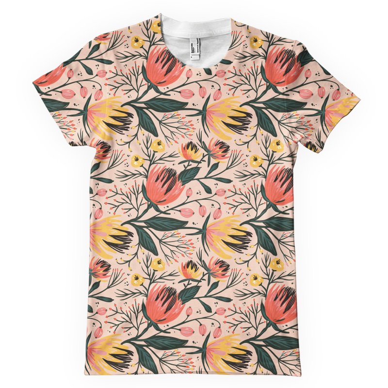 Vector floral seamless pattern with colored exotic blooms.This image is a vector illustration and can be scaled to any size without loss of resolution.This image will download as a .eps file.
