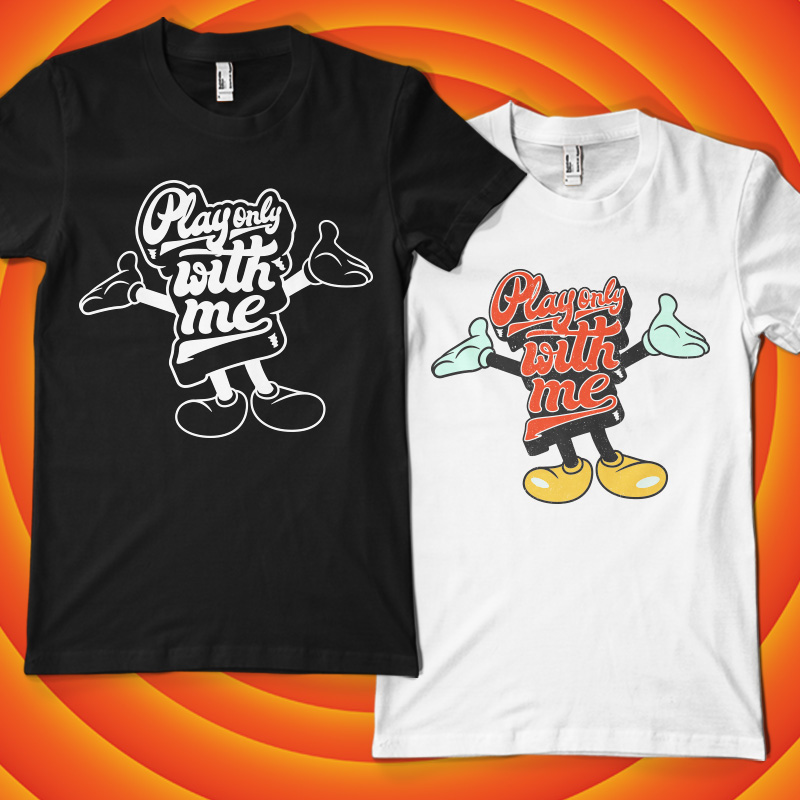 "Play with me" T-shirt design featuring typography style quote, with distressed details. The files available are suitable for Adobe Illustrator and Adobe Photoshop and can be used for digital printing and screenprinting.