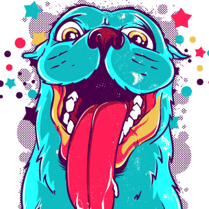 Happy monster dog on a stars background