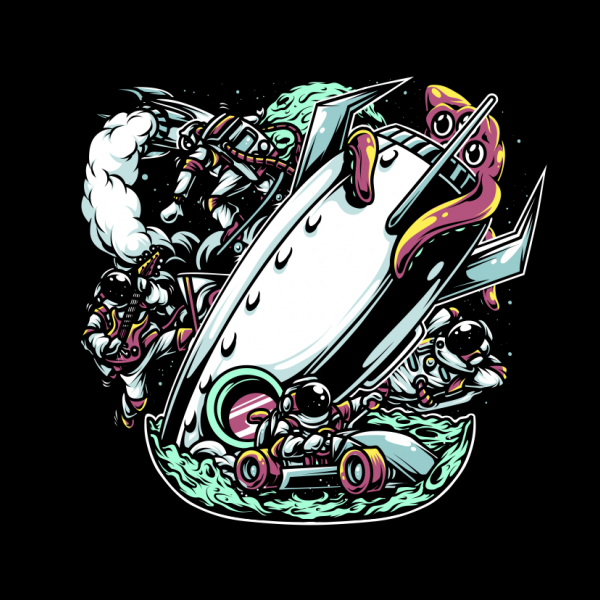 The title Playin in the Space , EPS and PNG files, cartoon character design is very cool for street wear style. suitable for children or teenagers. Ready to print, easy to change color.Enjoy