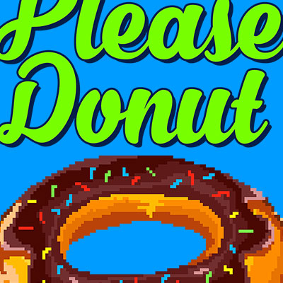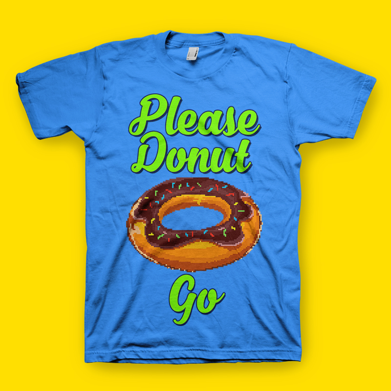 Please donut go pixel art food pun. Inspired from the retro video game pixel art mixed with funny quotes and donut cartoon illustration. Made with pixel art illustration.