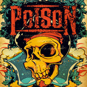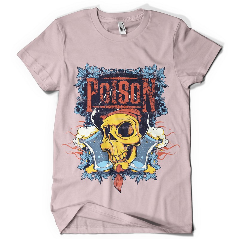 Poison digital design template in vector format, featuring detailed pirate skull now available for Adobe Illustrator, Adobe Photoshop and Corel Draw and can be used for digital printing and screenprinting .