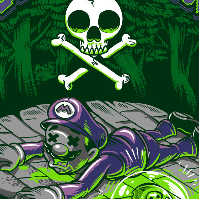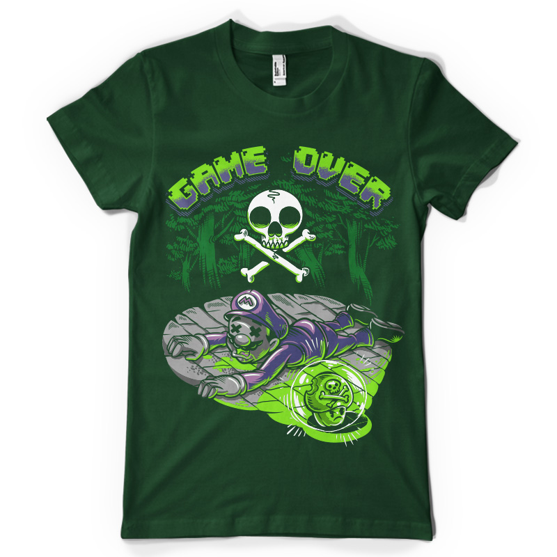 T-shirt design featuring Mario poisoned by a mushroom. Poisonous Mushroom t-shirt template is available in vector format and can be used for digital printing and screen printing. The file will be available for Adobe Illustrator and Adobe Photoshop.
