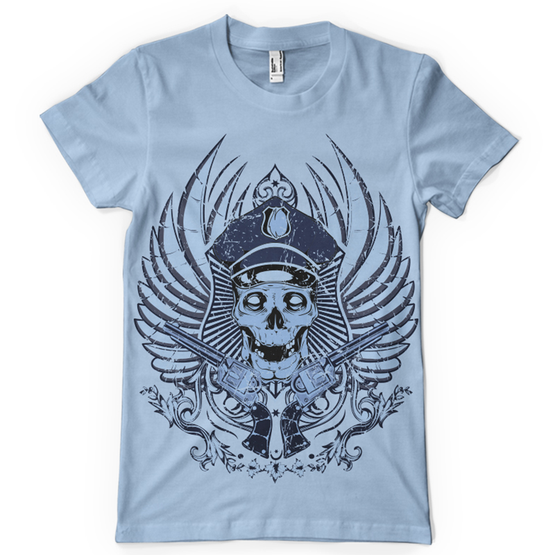 Policeman skull printed t-shirt features a detailed screen print of police skull is now available in EPS format file and can be used for digital printing and screenprinting . Ready to print or use in anything you want.