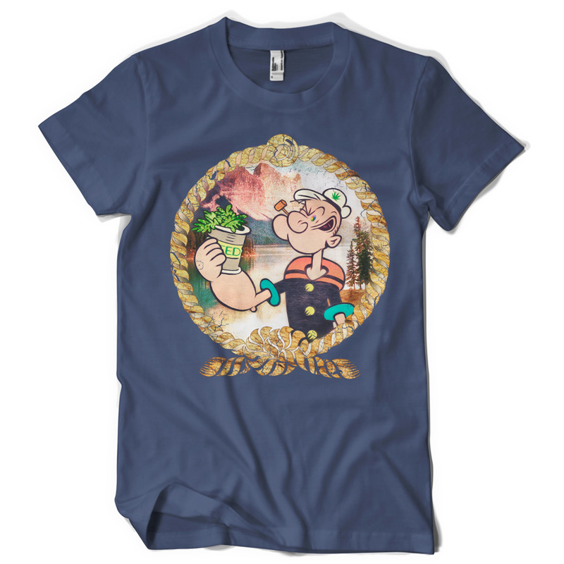 "popeye's secret" Artwork created in Adobe Photoshop. The file available for the client upon purchase and download are 1 layered file in TIFF (with transparency) format designed for DIRECT TO GARMENT printing. Also available upon request is 1 file in PDF format, layered, designed for the SCREEN PRINTING.