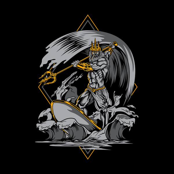 vector illustration of POSEIDON PADDLE BOARDING, this image is very cute for t-shirts and posters, this design is available in the form of files, CDR, AI, transparent backround PNG, JPEG, SVG, EPS, mookup not included
