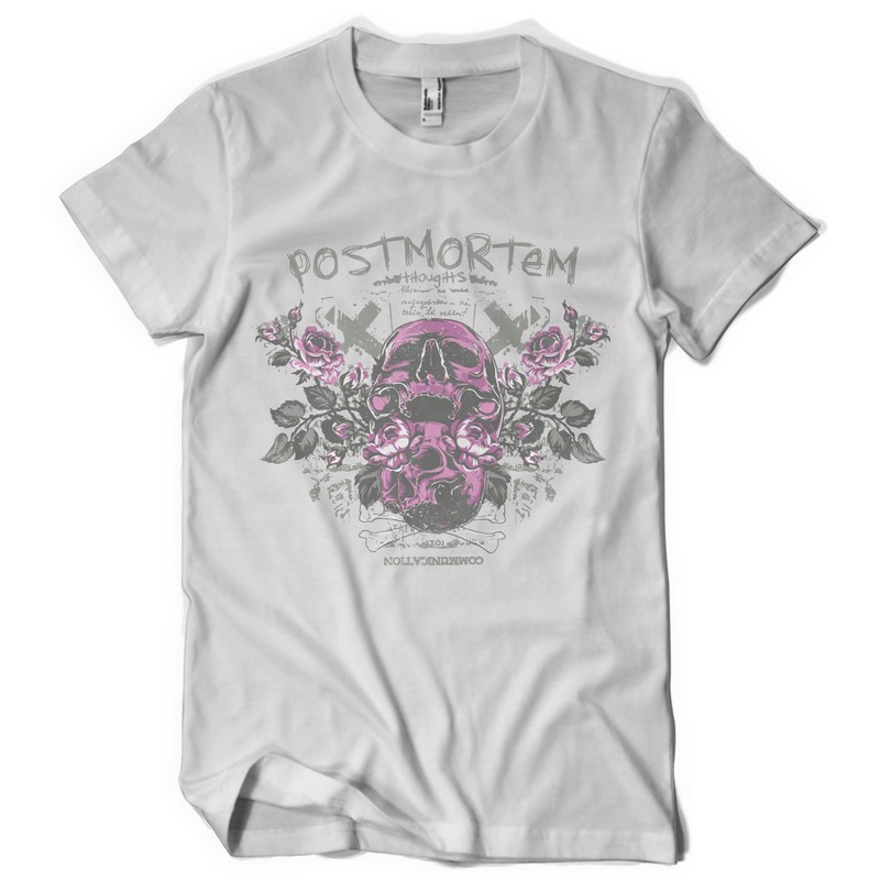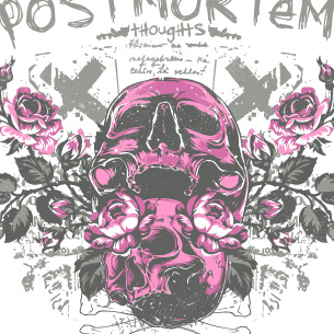 Postmortem graphic design template in vector format, featuring detailed skull after death now available for Adobe Illustrator, Adobe Photoshop and Corel Draw and can be used for digital printing and screenprinting .