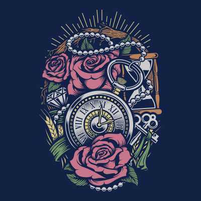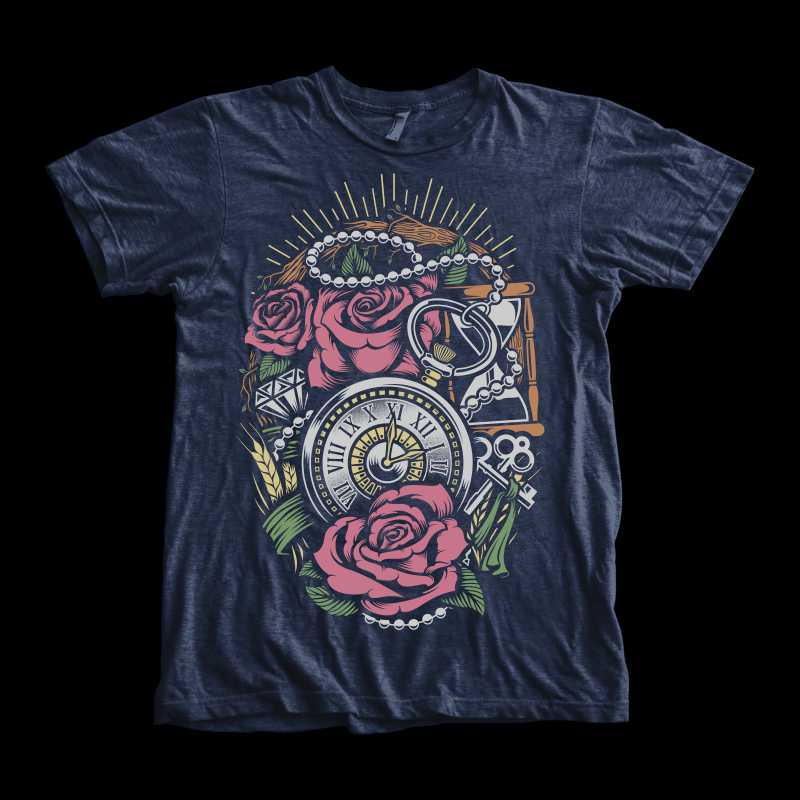 "Precious Time" typography style. This design use 5 colours on dark blue t-shirt. it is high quality vector format, easy for editing process, available for Adobe Illustrator, and Corel Draw and can be used for digital printing and screenprinting.