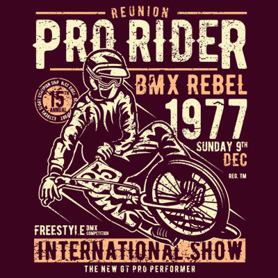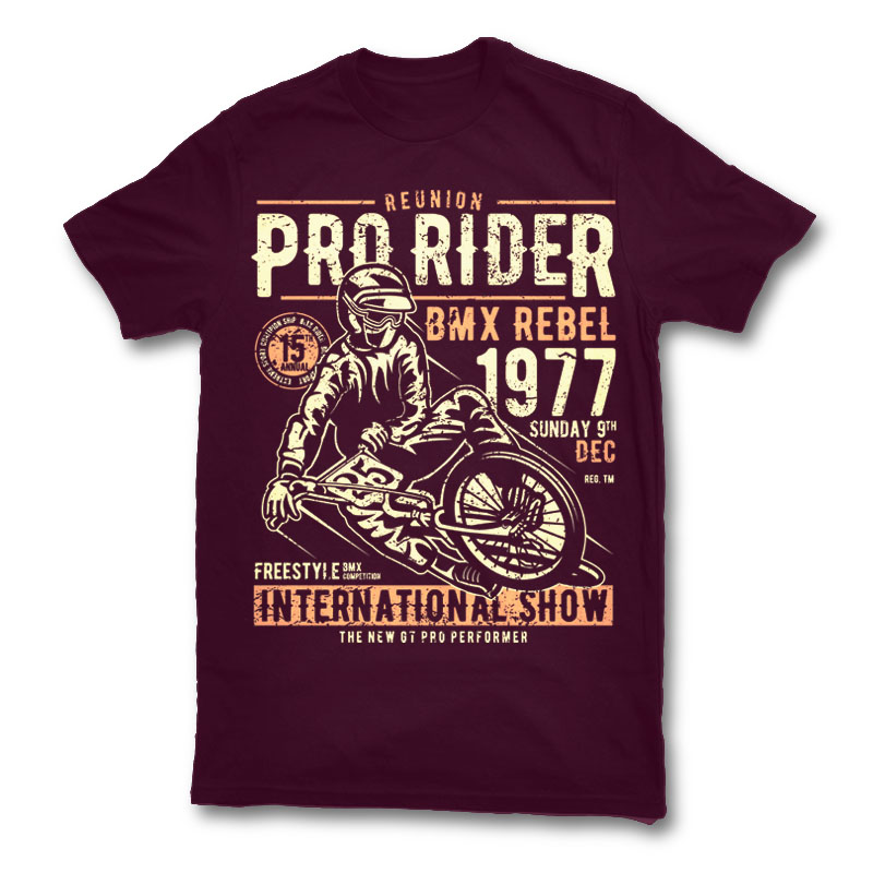 Pro Rider Tshirt Design Template based on vector files , such as AI and CDR also with PSD separated Layers file, the design has 2 color print, it can be used for digital printing and screen printing.
