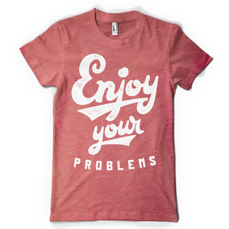 "Problems" T-shirt design featuring typography style quote, with distressed details. The files available are suitable for Adobe Illustrator and Adobe Photoshop and can be used for digital printing and screenprinting.