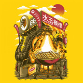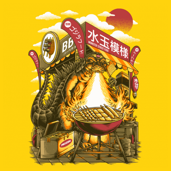 barbeque kaiju illustration T-shirt design template with png transparent high resolution (PNG). Can be used for digital printing and screen printing. thank you for support