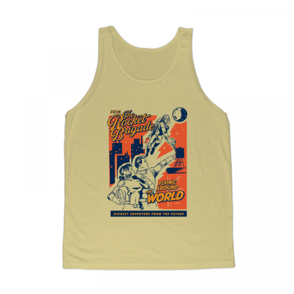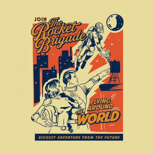 This design “ rocket brigade ” is made in Adobe Ilustrator is ready for print.
