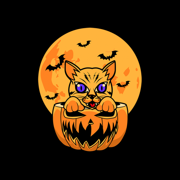 vector illustration of HALLOWEEN FUNNY CAT, this image is very great for t-shirts, stickers, posters, and anything you want. this design is available in the form of files, CDR, AI, transparent backround PNG, JPEG, SVG, EPS, mookup not included