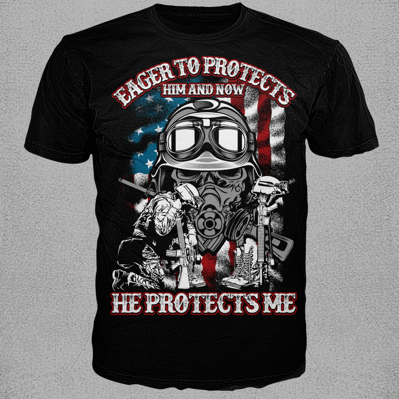 Colors and size in "Protects Me" is easy editable for any dark colors shirt.
