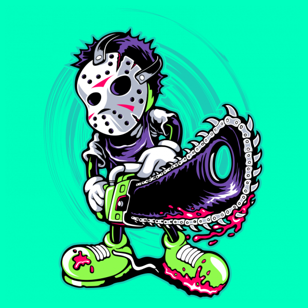 “psychopath ” Cartoon style. such as Ai, EPS, CDR, PDF and PNG Transparent. the design has 6 colors on black T-shirt. print it can be used for digital printing and screen printing