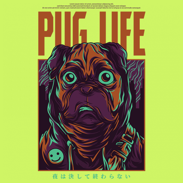 Pug Life Dog T-Shirt Design its a Character Design that was made in adobe illustrator. Based on vector file , easy to resize and edit. File features AI, EPS, PDF and PNG all in zip, CMYK color mode. Can be used for digital printing and screen printing. its a Character Design that was made in adobe illustrator. Based on vector file , easy to resize and edit. File features AI, EPS, PDF and PNG all in zip, CMYK color mode. Can be used for digital printing and screen printing.