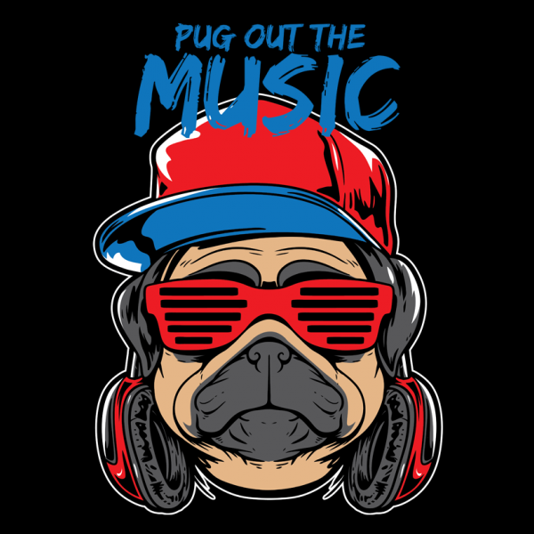 Pug the Dj – Vector T-shirt DesignSuitable for your clothing line store, club,distro or event. Easy to replace the text and colors.The zip contains EPS10 AI PDF PNG Big size image 14×16 300 DPI Ready to Print for -Silk Screen and Direct to Garment PrintingT-shirt Mock Up is not Included!Font Used info in Help File