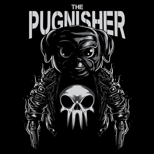 Pugnisher the dog. Vector T-shirt DesignSuitable for your clothing line store, club,distro or event. Easy to replace the text and colors.The zip contains EPS10 AI PDF PNG Big size image 14×16 300 DPI Ready to Print for -Silk Screen and Direct to Garment PrintingT-shirt Mock Up is not Included!Font Used info in Help File