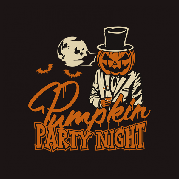 vector illustration of PUMPKIN PARTY NIGHT, this image is very great for t-shirts, stickers, posters, and anything you want. this design is available in the form of files, CDR, AI, transparent backround PNG, JPEG, SVG, EPS.