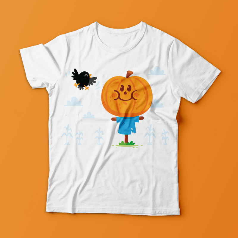 Cute funny scarecrow with pumpkin smiling head, perfect for Halloween!