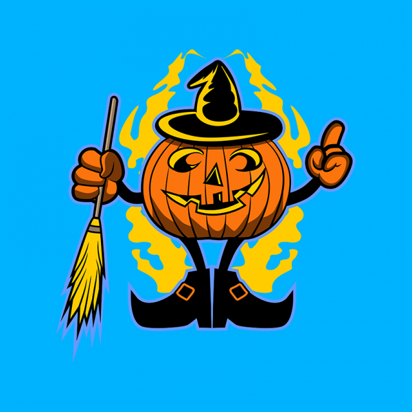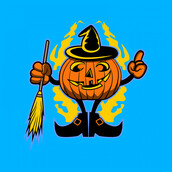 vector illustration of PUMPKIN WITCH, this image is very cute for t-shirts and posters, this design is available in the form of files, CDR, AI, transparent backround PNG, JPEG, SVG, EPS, mookup not included