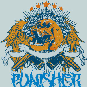 Digital design featuring detailed screaming skull. Punisher template is available in vector format and can be used for digital printing and screenprinting. The file will be available for Adobe Illustrator, Adobe Photoshop and Corel Draw.