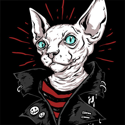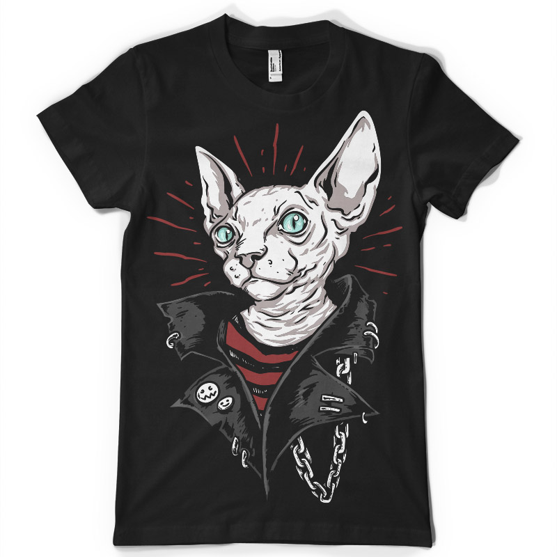 Punk Sphinx Cat T-shirt design in vector format .This is an Adobe Illustrator file, ready for print. Files included are Eps & PNG. The template can be used for digital printing and screen-printing.
