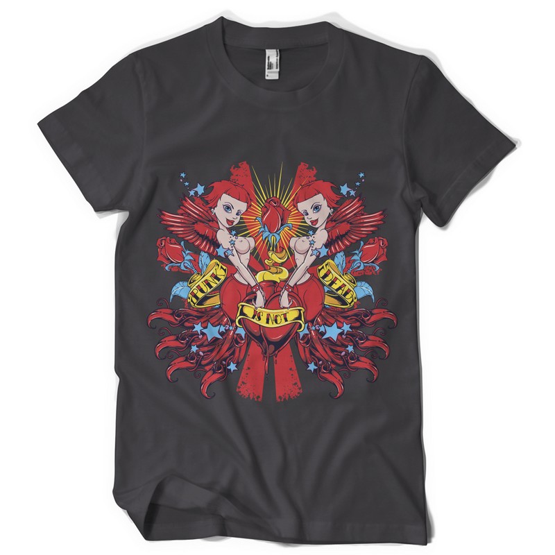 Punk is not dead digital design template in vector format, featuring detailed sexy punk angel now available for Adobe Illustrator, Adobe Photoshop and Corel Draw and can be used for digital printing and screenprinting .