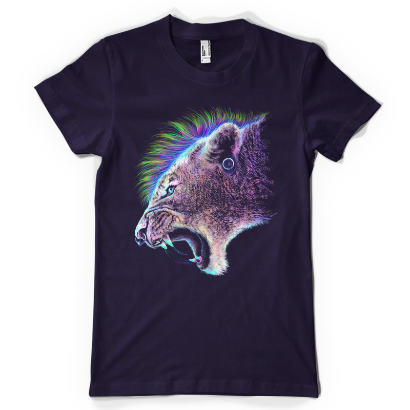 "Punk Tiger" is a unique digital illustration of a tiger with a punk hairstyle paired with neon colors which makes it unique and pops it out on a shirt. File contains a PSD file with 17x24 in size.