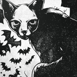 Purr Evil graphic design template in vector format, featuring detailed evil cat in the graveyard now available for Adobe Illustrator, Adobe Photoshop and Corel Draw and can be used for digital printing and screenprinting .