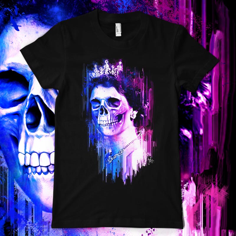 "Queen of Skulls" is a unique illustration of a skull as a queen paired with a mixture of vibrant neon colors and modern grunge geometric patterns to give it a twist of modern grunge pop art design. FIle contains a PSD file with 17x24 in size.