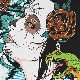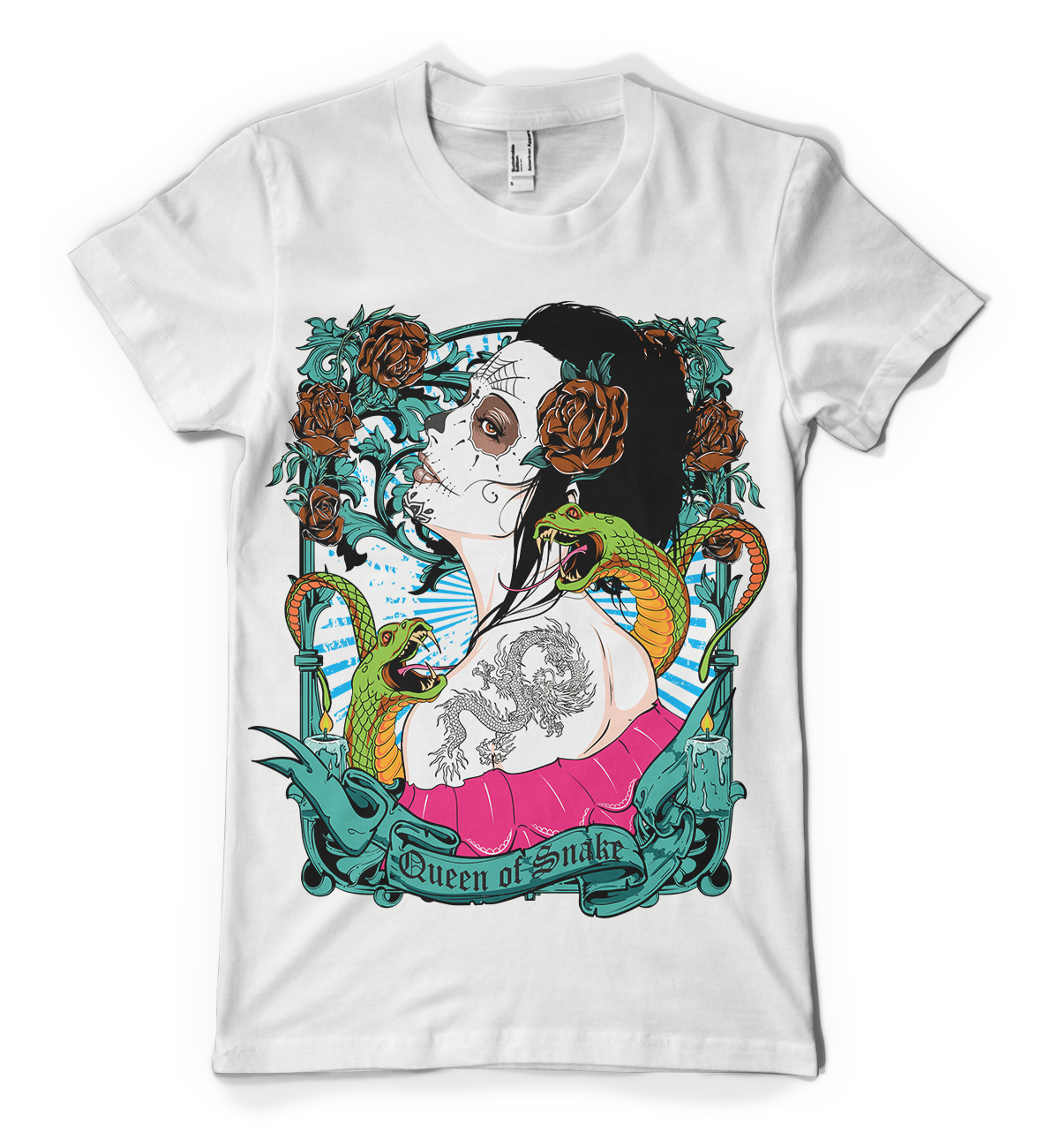 Queen t-shirt design features a detailed screen print of sexy sugar girl now available for Adobe Illustrator, Adobe Photoshop and Corel Draw and can be used for digital printing and screenprinting .