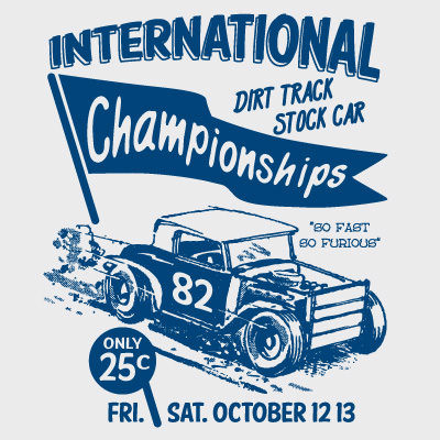 International championship! Dirty Track and race cars, so fast! so furious! Sporting race illustration made by Danilo De Donno. Vintage taste. (photoshop, Illustrator, EPS and PDF)