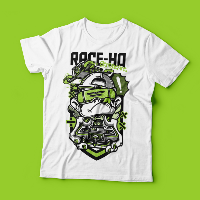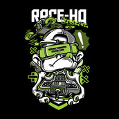 Race-HQ a Character Design that was made in adobe illustrator. Based on vector file , easy to resize and edit. File features AI, EPS, and PNG all in zip, CMYK color mode and 3 color (2 color if in white/black shirt). Can be used for digital printing and screen printing.