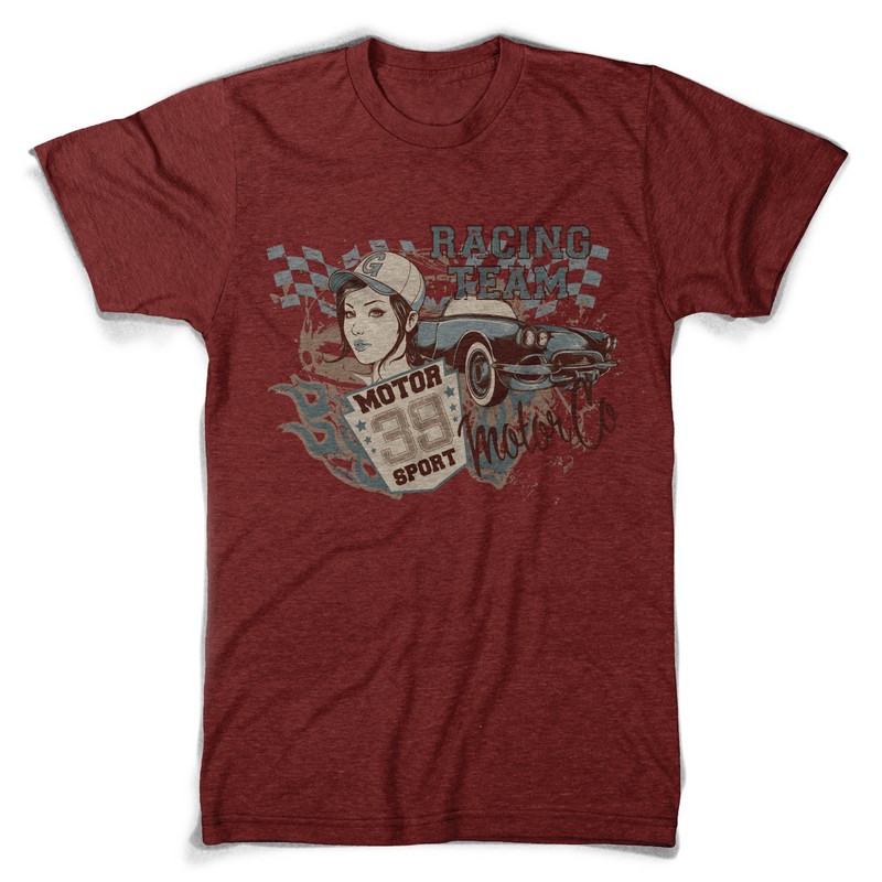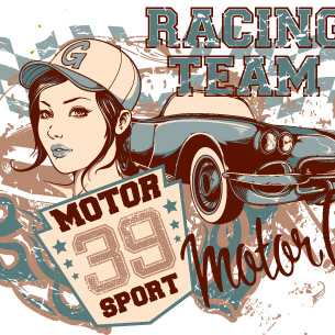 Graphic design featuring detailed racing design. Racing team template is available in vector format and can be used for digital printing and screenprinting. The file will be available for Adobe Illustrator, Adobe Photoshop and Corel Draw.