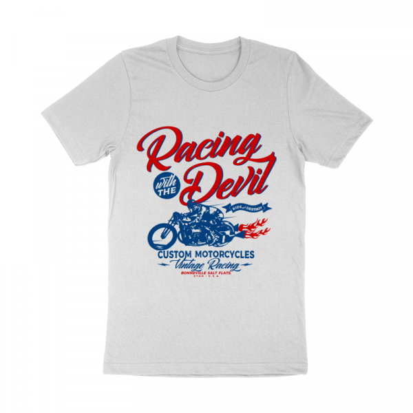 This design “ racing with the devil ” is made in Adobe Ilustrator is ready for print.