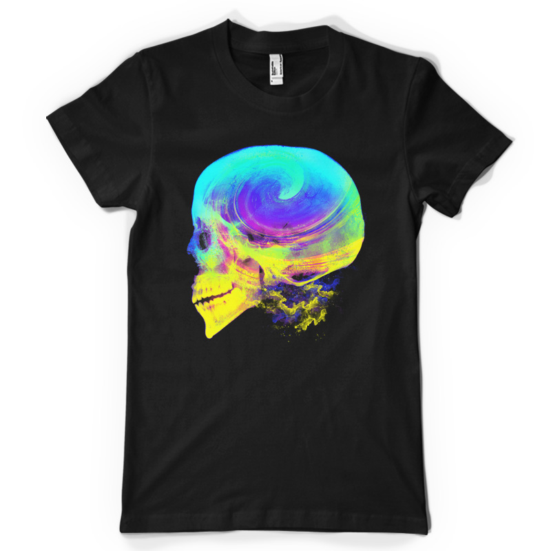 "Radical Mind" is a unique illustration of a colorful skull creating a wave effect on its head that represents the ideas and its creativity. Bright neon colors mixed with a unique texture makes this tee the next big thing. File contains a PSD file with 17x24 in size with 300 dpi.