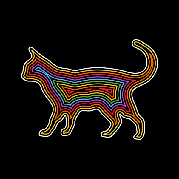 Rainbow Cat is a monoline illustration that is suitable for apparel or merchandise about animals, pet, cat, cute, kitten, kitty, funny, paw, dog, zoo, rainbow, doodle, fauna, apparel.