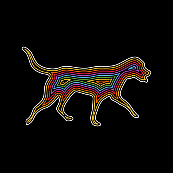 Rainbow Dog is a monoline illustration that is suitable for apparel or merchandise about animals, pet, cat, cute, puppy, funny, doggy, dog, zoo, rainbow, doodle, fauna, apparel, husky, bulldog.