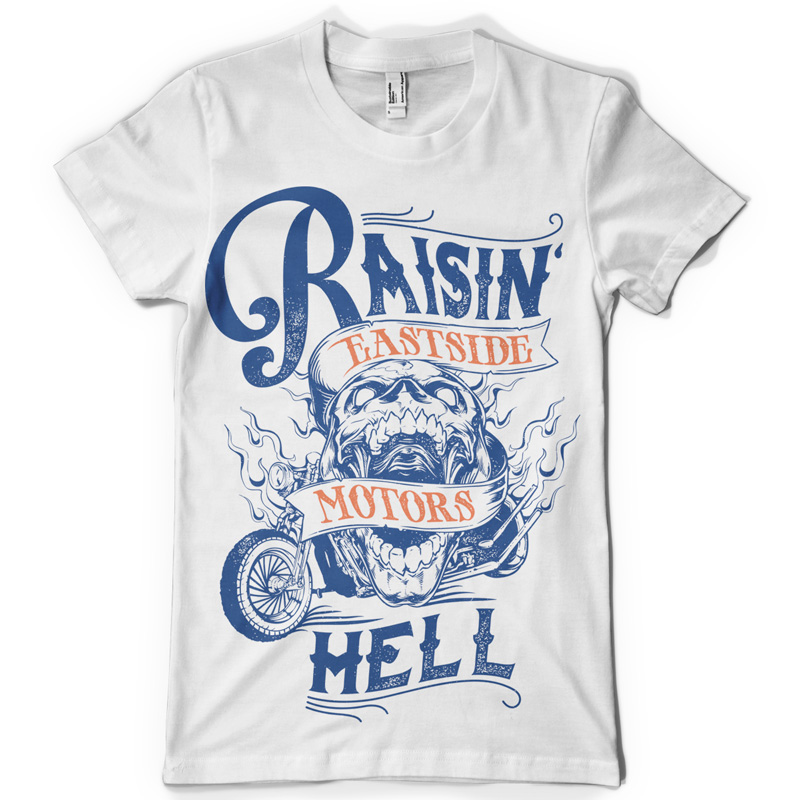Raisib Hell graphic design template in vector format, featuring detailed screaming skull now available for Adobe Illustrator, Adobe Photoshop and Corel Draw and can be used for digital printing and screenprinting .