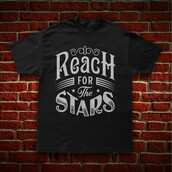 "Reach for the stars" Typography style t-shirt design.