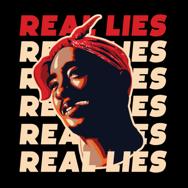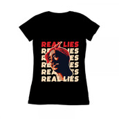 This design “ real lies ” is made in Adobe Ilustrator is ready for print.