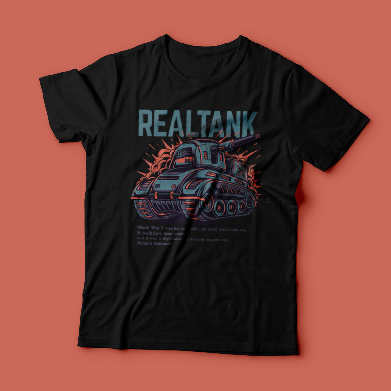 Real Tank it's a character design that was made in Adobe Illustrator. Based on vector file, easy to resize and edit. File features AI, EPS, and PNG all in zip, CMYK color mode and 4 color. Can be used for digital printing and screen printing.