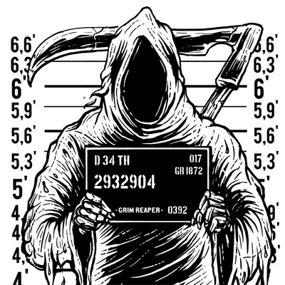 Reaper Mugshot artwork concept for T-shirt design with 1 print colors and the delivered file are CDR, AI, EPS, PSD separated Layers and PNG Image File. This artwork Can be used for digital printing and screen printing. Enjoy
