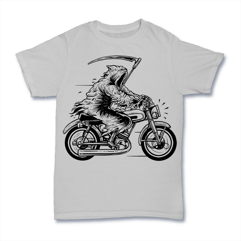 Reaper Racer artwork concept for T-shirt design with 1 print colors and the delivered file is PSD separated Layers and PNG Image File. This artwork Can be used for digital printing and screen printing. Enjoy