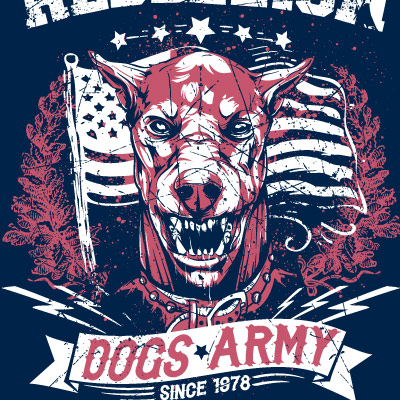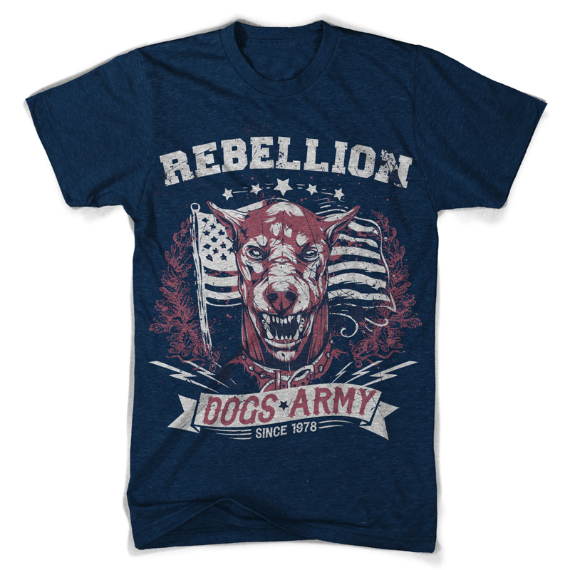 Digital design featuring detailed angry dog. Rebellion t-shirt template is available in vector format and can be used for digital printing and screenprinting. The file will be available for Adobe Illustrator, Adobe Photoshop and Corel Draw.